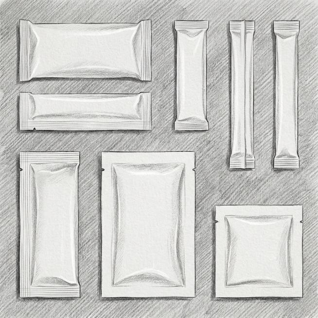 Single-use disposable sachets for food service and hospitality applications.